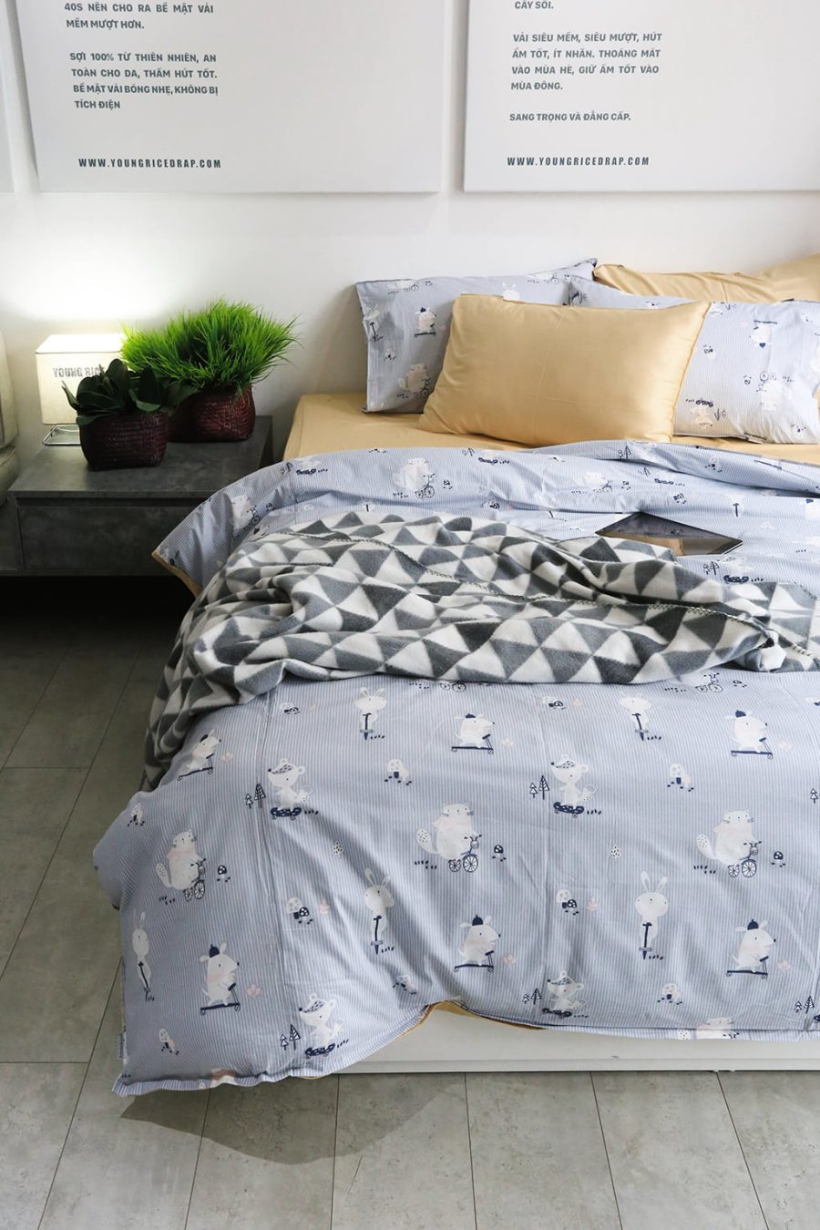 – 2 vỏ gối 50×70 cm: Hoạ tiết chuột