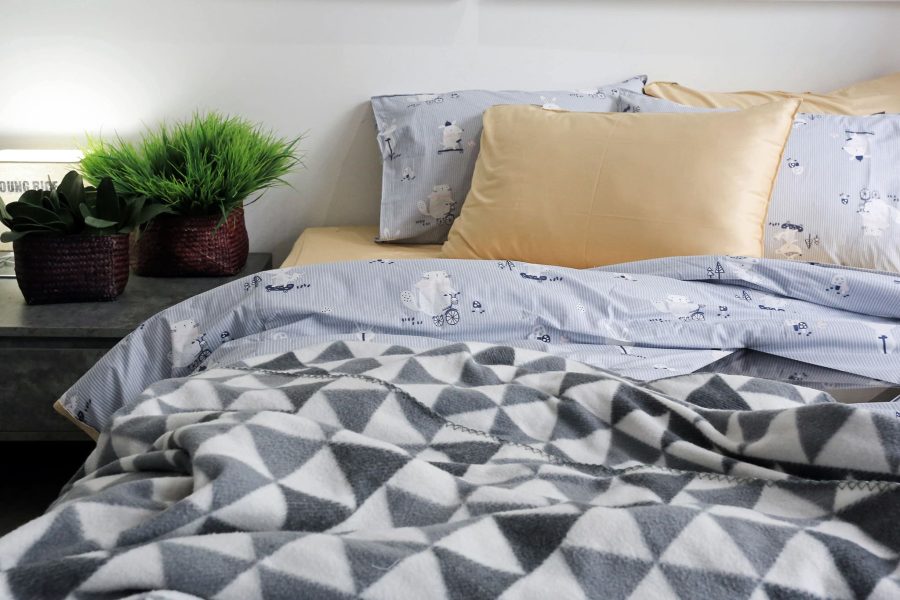 Bộ chăn drap dễ thương và xinh xắn tô điểm sắc màu cho không gian phòng ngủ thêm tươi sáng, rực rỡ.