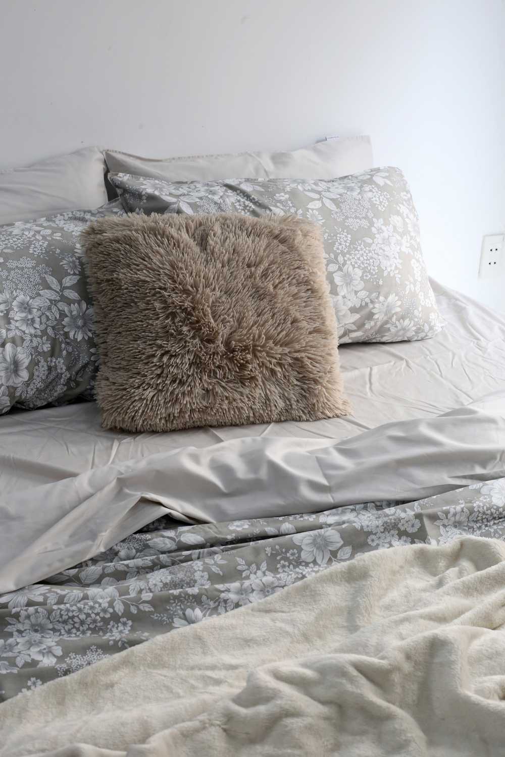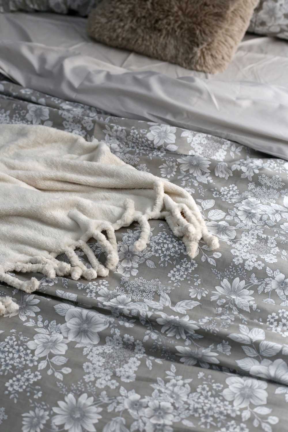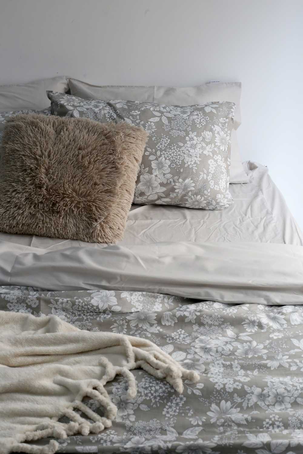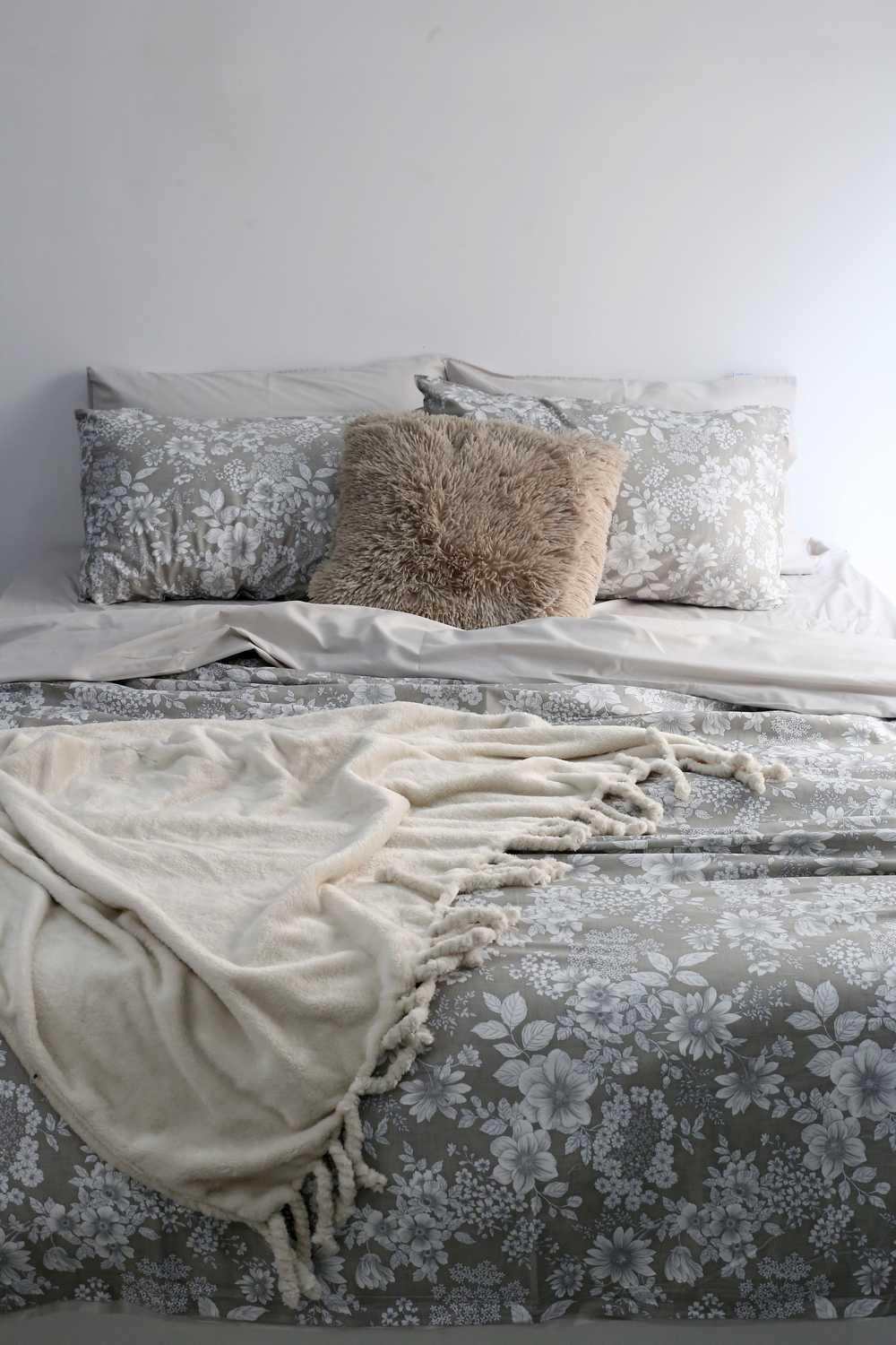 – 2 vỏ gối 50×70 cm: hoa nền xám be
