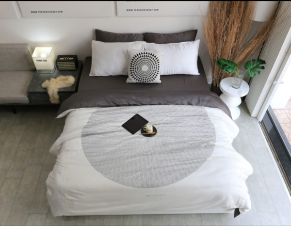 – 1 vỏ mền 2 mặt 2m x 2.2 m : xám đậm + họa tiết xám (chưa bao gồm ruột chăn)