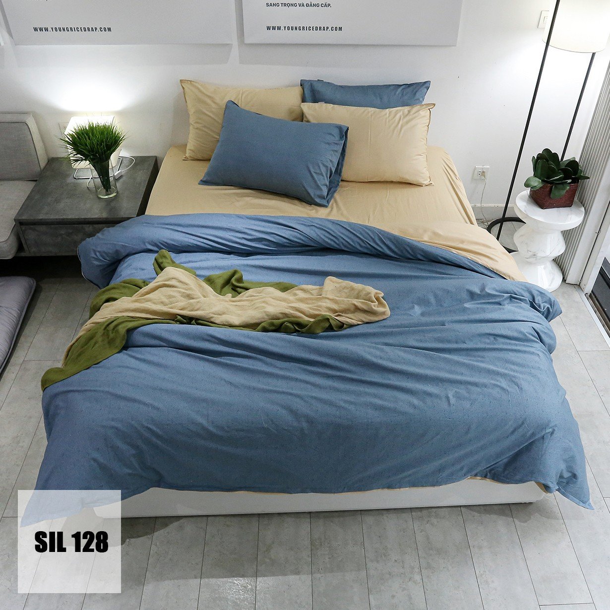 – 2 vỏ gối 50×70 cm : vàng nhạt ( hoặc 1 vỏ gối ôm 75 x 105 cm)